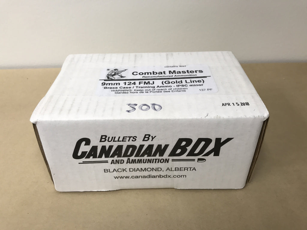CANADIAN BDX 9MM 124 GR FMJ GOLD LINE AMMUNITION 300PK.