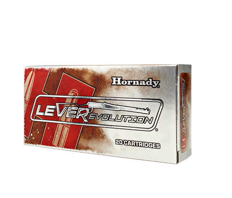 An innovation in ammunition performance featuring state of the art elastomer Flex Tip Technology that allows it to be safely used in tubular magazines. LEVERevolution delivers up to 250 feet per second faster muzzle velocity than conventional lever gun loads and gives you dramatically flatter trajectories and more downrange energy.