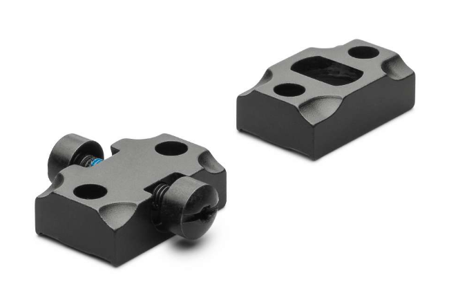 The Leupold steel standard bases and rings are the most versatile of any mounting system we offer. The rear ring is secured by windage adjustment screws, allowing the scope's internal adjustments to be reserved for precise sight-in. Additionally, shims can be used for gross elevation adjustment, reserving the scope's elevation adjustment for bullet drop compensation dial applications.