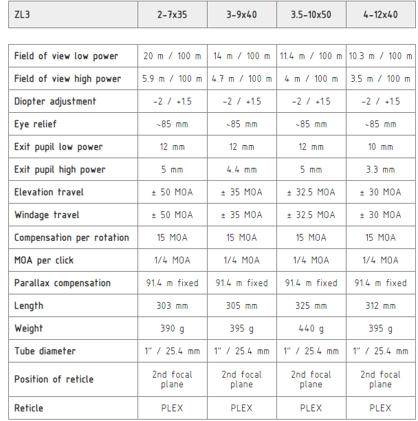 The excellent optical performance and reliable mechanics perfectly meet the demands of any hunter looking for a quality piece of gear. Equipped with fully multi-coated lenses, 1 inch tube and 3x zoom range, the MINOX ZL3 riflescopes are the ideal solution for use in every situation.