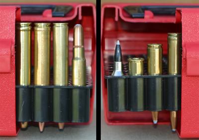 Specially designed for shooters who require a 100 round supply of very accurate ammunition (such as big bore, varmint hunters, etc.) The R-100 provides excellent protection for reloads and when the rounds are in the down position, they are protected by four special fingers which keep your bullets from hitting the bottom of the box and causing tip damage (which can change flight characteristics). It comes with adjustable inner trays which offer two height positions for different cartridge lengths.