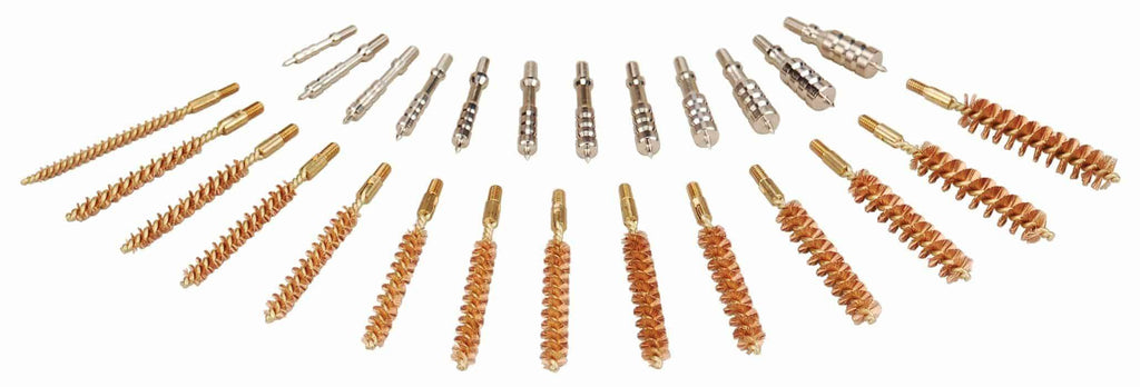 Combining the Ultra Jags™ and Best Bore Brushes™ into one convenient 26-piece set gives you the ultimate storage system for your brushes and jags . Neatly organized in a durable, hinged box with marked cavities, it’s easy to select the correct jag and brush for your particular application. Because they are caliber-specific, you can be assured of an optimum fit to your firearm’s bore for efficient and thorough cleaning. 17 to 45 caliber (does not include 20 caliber). All jags and brushes have 8-32 threads (17 caliber has 5-40 threads and is a standard bore brush).