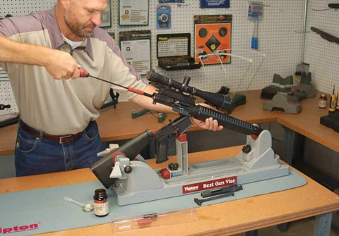 The Tipton® universal bore guide will help protect the bore and action of your rifle by properly aligning the cleaning rod and reducing solvent overflow. Cleaning without a bore guide can allow the rod to “bow” and rub or gouge the chamber and throat of the bore, causing real damage and loss of accuracy. Keeping the rod properly aligned not only protects your barrel, it directs the force exerted on the cleaning rod handle allowing tight patches to be pushed more easily.