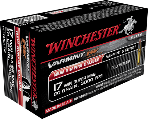The new 17 Win Super Mag caliber ballistically exceeds the velocity, energy, trajectory and wind drift characteristics of all rimfire products currently available. The highest velocity rimfire cartridge in the world!